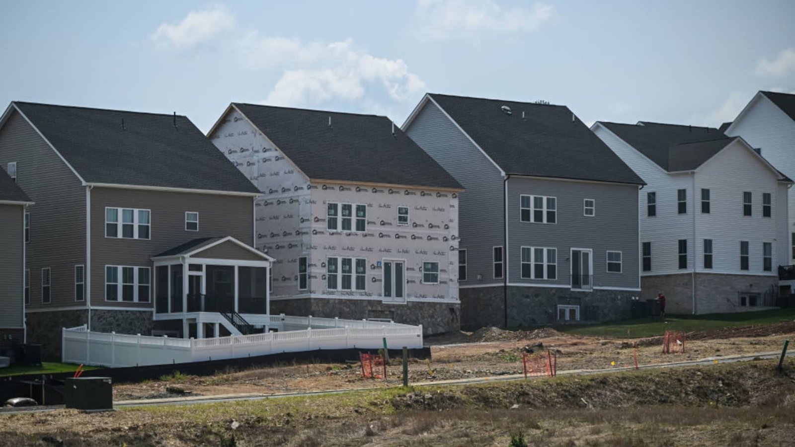 Homes under construction are seen among completed homes in a new development in Brambleton, Virginia, on August 14, 2024.
