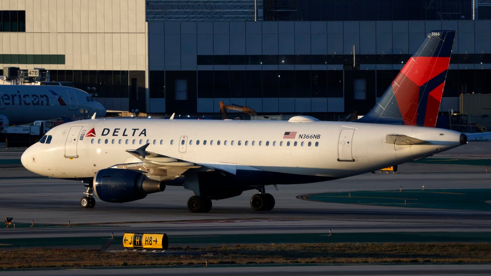 A Delta Airlines Airbus A319-114 taxis at Los Angeles International Airport after arriving from Las Vegas on May 5, 2024 in Los Angeles, California.