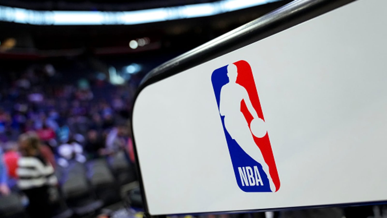 NBA logo before a game between the Detroit Pistons and Charlotte Hornets at Little Caesars Arena on March 11, 2024 in Detroit.