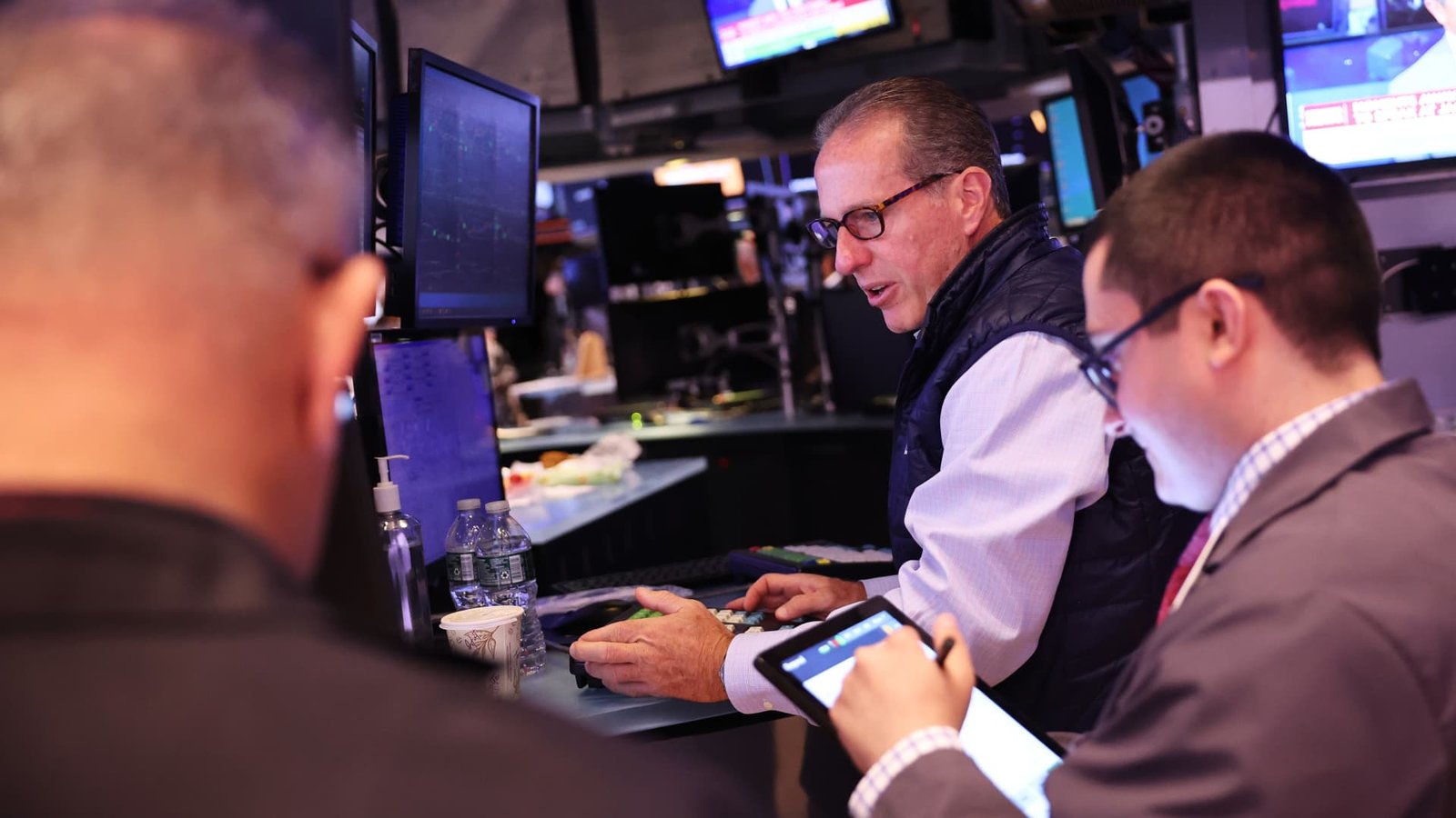 Traders work on the floor of the New York Stock Exchange during morning trading on August 23, 2024 in New York City.