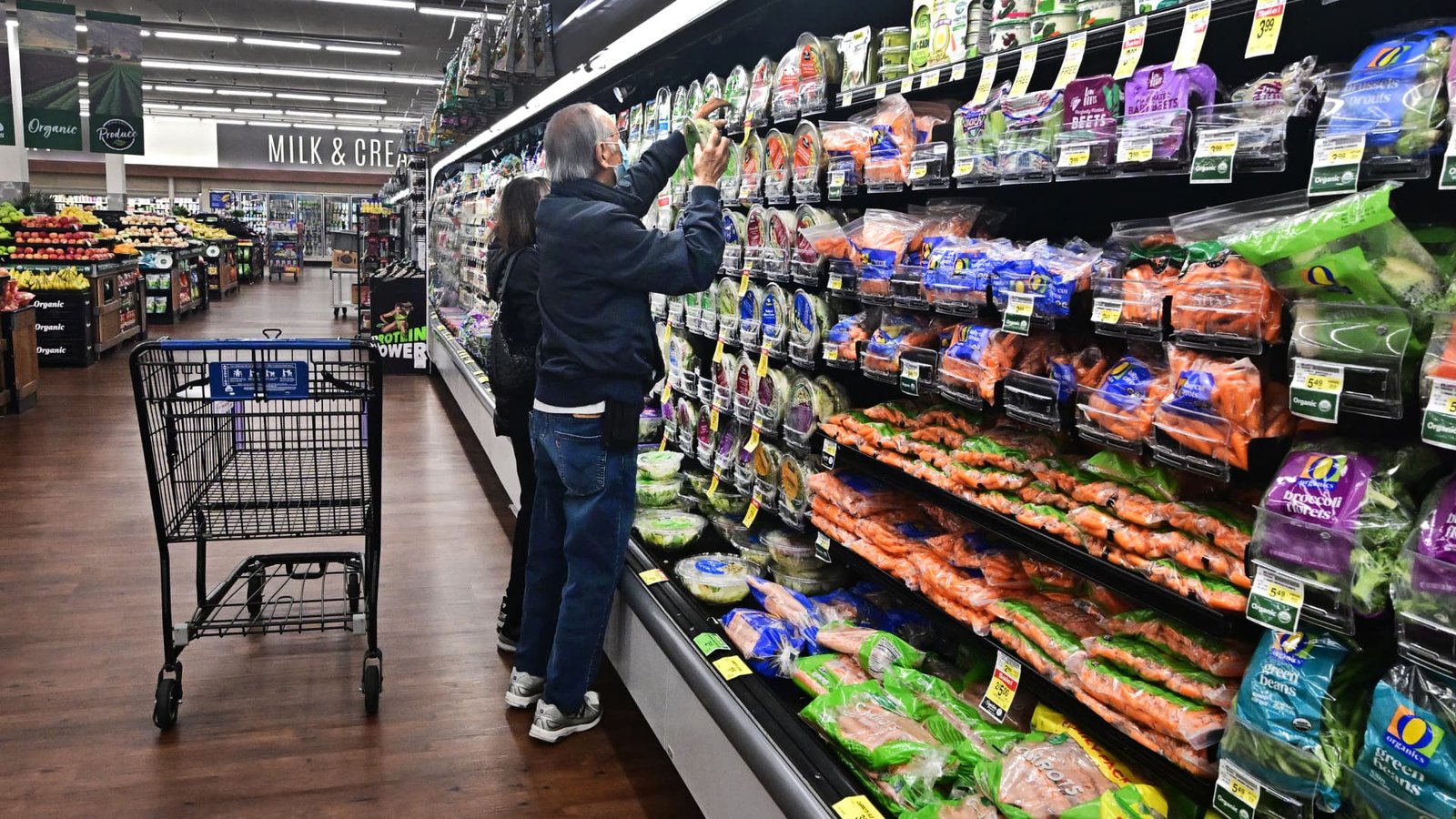 People shop at a supermarket in Montebello, California on May 15, 2024.